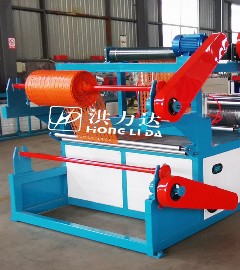 ◆ Raw material → mixing → input hopper → melt plasticizing → extruded into a net through the machine head → cooling and shaping → primary traction → cutting to start flat → hot water heating → longitudinal stretching → secondary traction → rewinding finished products.